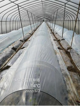 4、基质处理 基质提前装盘后反复浇透水,覆地膜上盖小弓棚,晴天膜内保持高温一周熟化土壤,预防基质再发酵,保持基质疏松透气。