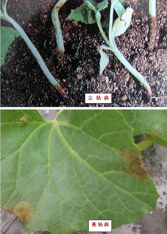 ①主要病害防治 苗期病害猝倒病、立枯病、蔓枯病、疫病、细菌性角斑病,种子检疫,种子药剂浸种及种子包衣、土壤消毒是预防苗期病害的关键,猝倒病用95%绿亨一号3000倍加58%甲霜灵锰锌500倍混合液喷淋营养土;疫病用10%科佳1500倍液喷雾;蔓枯病用40%信生5000倍液喷雾;细菌性角斑病用2%加收米500倍液喷雾。大田病害有灰霉病、霜霉病、白粉病、蔓枯病、细菌性角斑病、根结线虫病等,灰霉病用40%施佳乐1000倍液或50%速克灵1500倍液喷雾防治,霜霉病用72%杜邦克露800倍液或58%雷多米尔1000倍液喷雾防治,白粉病用10%世高1500倍液喷雾,蔓枯病用40%信生3000倍液喷雾,细菌性角斑病用47%加收米600倍液喷雾,根结线虫病用3%阿维菌素1500倍灌根。