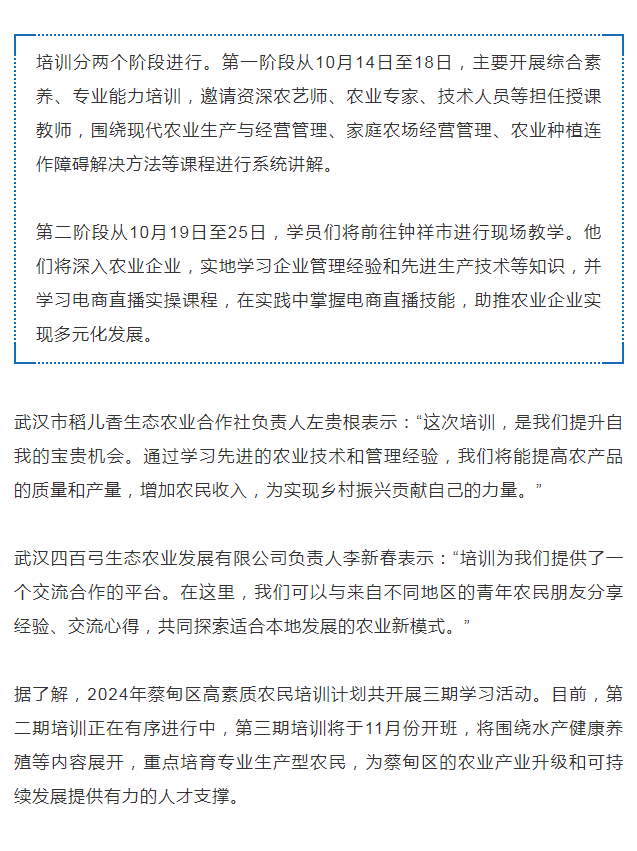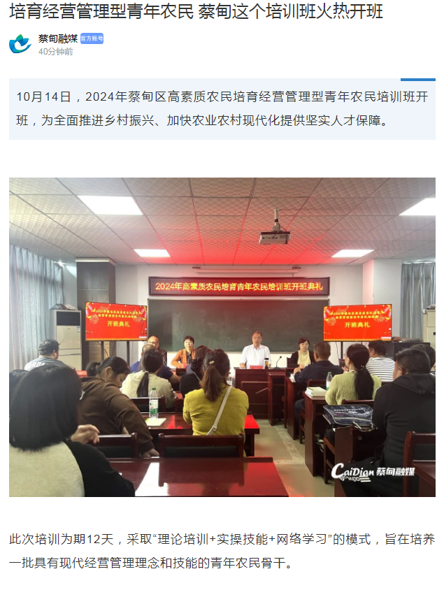 培育经营管理型青年农民 蔡甸这个培训班火热开班